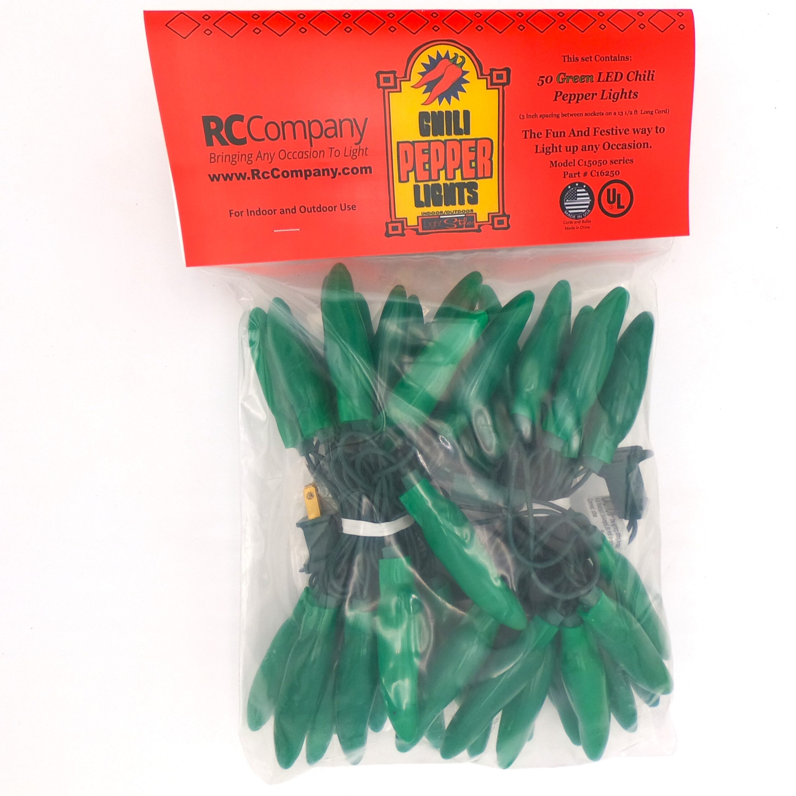 C16250 50 LED Green Chili Pepper Lights back by RC Company LLC