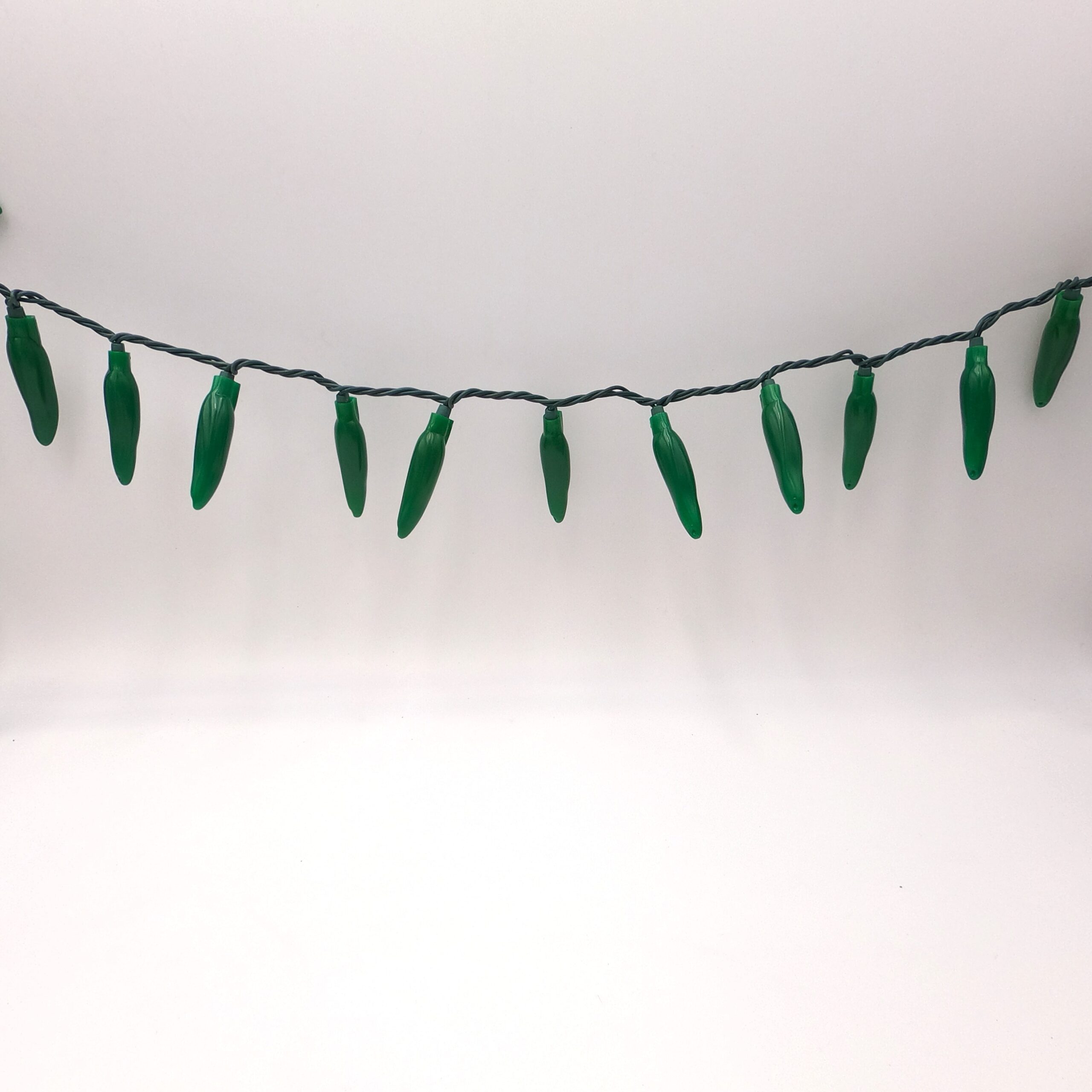 50 LED Green Chili Pepper Lights (50 Lights, 13 1/2-ft. Long, 3 inch spacing between lights, Each Chili’s measurement is 3 inches long by 3/4 inch wide)