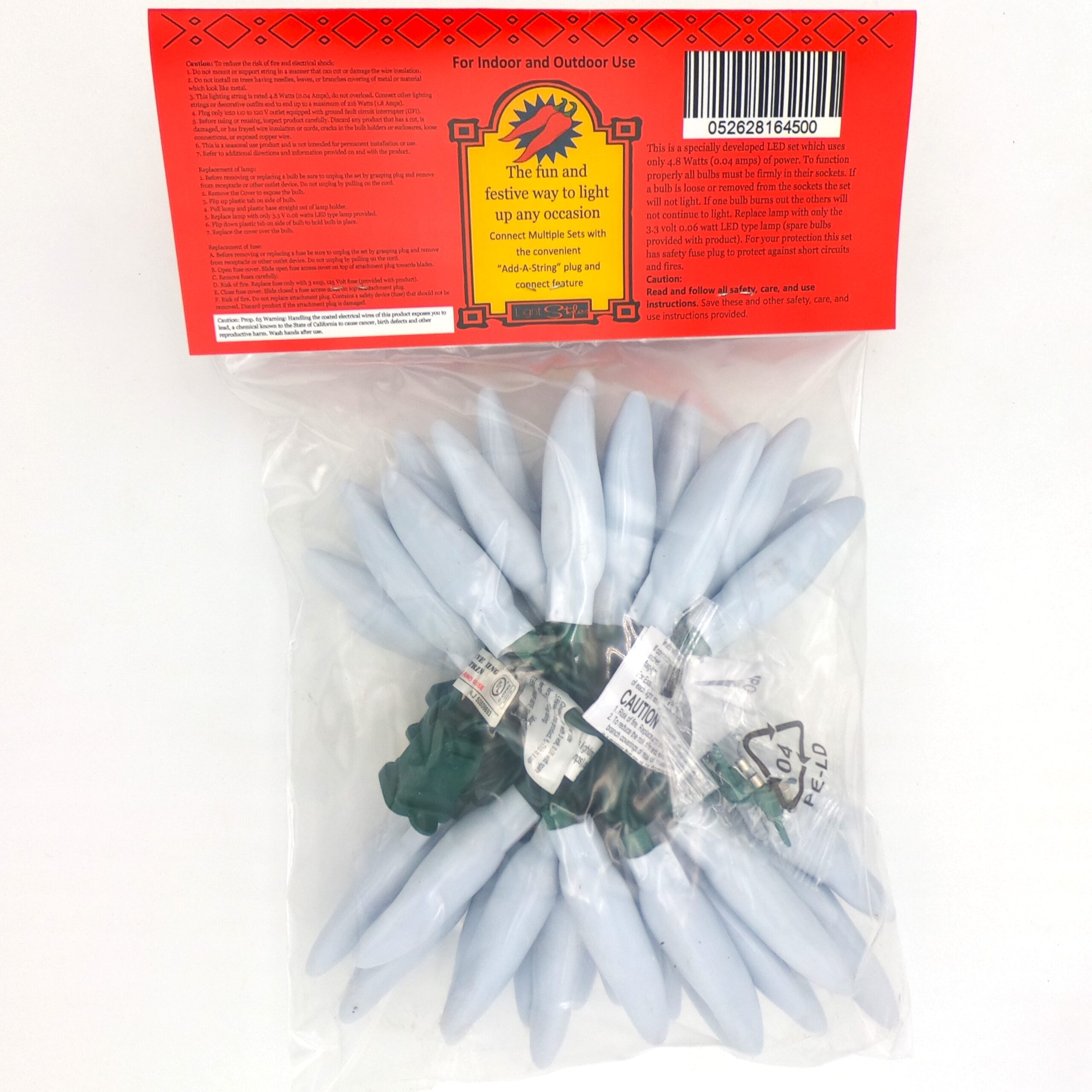 50 LED White Chili Pepper Lights (50 Lights, 13 1/2-ft. Long, 3 inch spacing between lights, Each Chili’s measurement is 3 inches long by 3/4 inch wide)